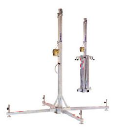 Für mobile Diskotheken, Bands, Bühnen, Messestände etc. eignet sich der Traversenlift LW-150 von Work ideal. Als Teleskoplift mit drei Stahlprofilen und mit automatischer Lastdruckbremse ausgestattet, ist er besonders sicher. Ein innengeführter Seilzug hebt die einzelnen Stahlprofile an. Parallel zum Mastfuß sitzen 4 abnehmbare Ausleger, die für eine gute Standsicherheit sorgen. Ein Sicherungsbolzen hält die inneren Mastelemente in der jeweiligen Arbeitsstellung, so daß das Seil lastfrei bleibt und ein ungewünschtes Absacken verhindert wird. Die kompakte Bauweise und die einfache Handhabung beim Transport sind weitere Vorteile des flexiblen Lifts.
