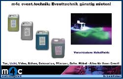 Unsere Nebelmaschinen und Hazer sind in der Vermietung normalerweise mit einem "Allround-Nebelfluid" ausgestattet. Zusätzlich sind weitere Nebelfluids erhältlich.